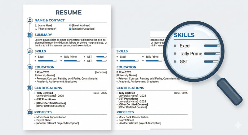 - Tally Prime / QuickBooks Certification — a must-have for most entry level roles in India