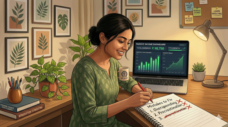 Reinvest your first ₹5,000. Once you earn your first ₹5,000, don’t spend it on food — put it into a SIP. Let one passive income stream fund another. This is how students in India go from ₹5,000/month to ₹50,000/month within two years.